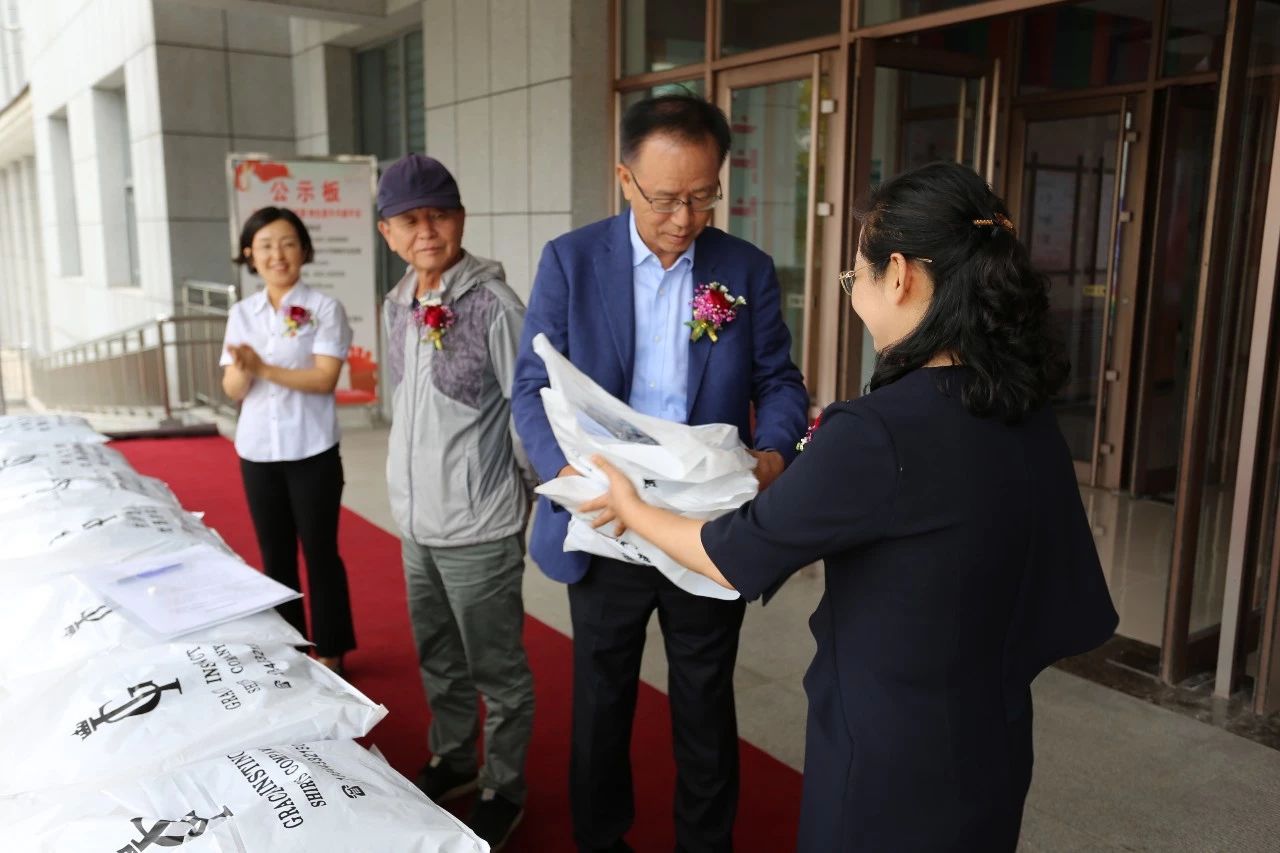 中央小學校長對此次南龍董事長的捐贈行動表示了肯定及感謝,并回贈了感謝牌。