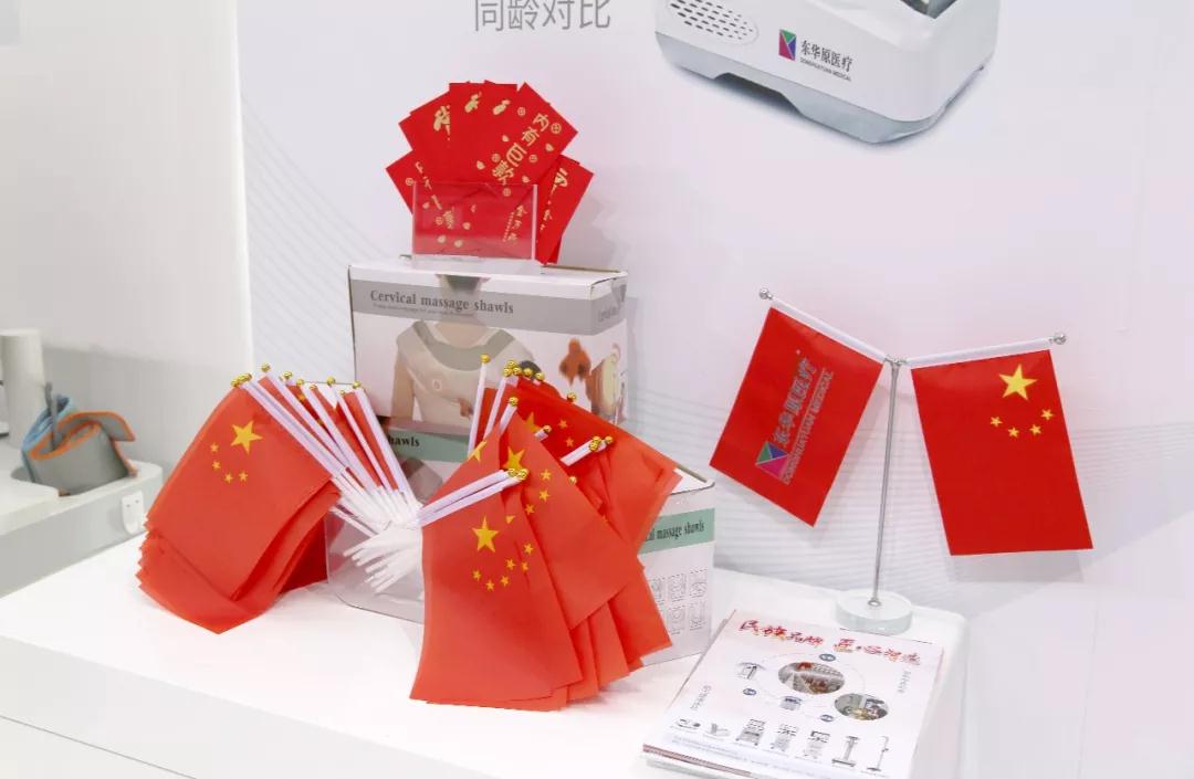一進(jìn)入S2場館主通道,東華原醫(yī)療別具匠心的展臺映入眼簾,展臺背景墻上飄揚(yáng)著的五星紅旗、展位上方巨大的“70”異形LED屏幕十分引人注目,這是為慶祝祖國70周年華誕而特別加入的設(shè)計(jì)元素,展位最高處展示的主題“民族品牌,匠心智造”,完美的詮釋了東華原醫(yī)療以產(chǎn)業(yè)報(bào)國,產(chǎn)品強(qiáng)國,助力全國人民健康夢的決心。