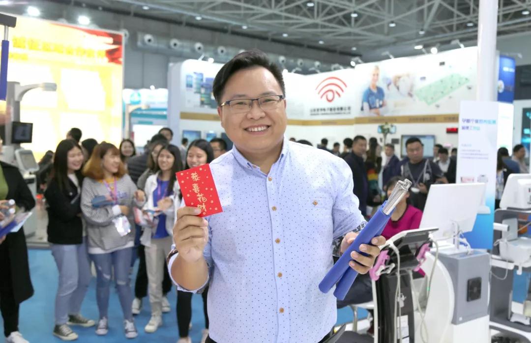 在這次展會(huì)中,東華原醫(yī)療還人性化的設(shè)置了暖場小游戲“眼疾手快”,并設(shè)置了不同的獎(jiǎng)項(xiàng),包括自動(dòng)按摩儀、紅包、獻(xiàn)禮祖國小國旗等獎(jiǎng)品。每天上、下午兩場的網(wǎng)紅互動(dòng)游戲掀起了現(xiàn)場的陣陣熱潮,展會(huì)期間共吸引了上百人參加,大家都“各展身手”,最終有2位觀眾喜贏我們的全場最高大獎(jiǎng)。
