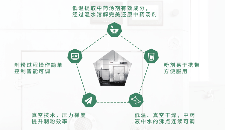 ????????中藥湯劑是中藥傳統(tǒng)劑型,其療效已經(jīng)在中醫(yī)發(fā)展的漫漫長河中得到了充分的驗(yàn)證,得到了人們的認(rèn)可和信賴。但是考慮到隨著生活節(jié)奏的加快,湯劑的物理性狀,一定程度上制約著個(gè)人攜帶以及服用,為了保證中藥湯劑的療效,解決中藥湯劑的攜帶和飲用方便的問題,東華原醫(yī)療特別研制了中藥制粉機(jī)。