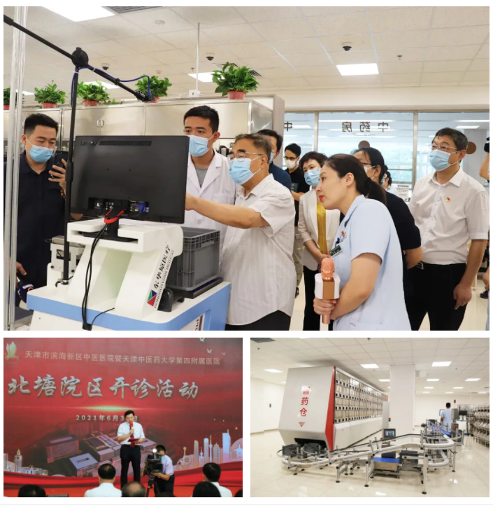 此前,6月30日,天津市濱海新區(qū)中醫(yī)醫(yī)院暨天津中醫(yī)藥大學(xué)第四附屬醫(yī)院北塘院區(qū)正式開診。東華原醫(yī)療中藥飲片智能調(diào)劑系統(tǒng)亮相開診儀式,并以其自動化的操作、高效可靠的調(diào)劑、智能審方復(fù)核等功能廣受好評。7月13日,“人民英雄”國家榮譽稱號獲得者,中國工程院院士,天津中醫(yī)藥大學(xué)名譽校長張伯禮蒞臨現(xiàn)場,對東華原醫(yī)療中藥飲片智能調(diào)劑系統(tǒng)做出了高度評價。