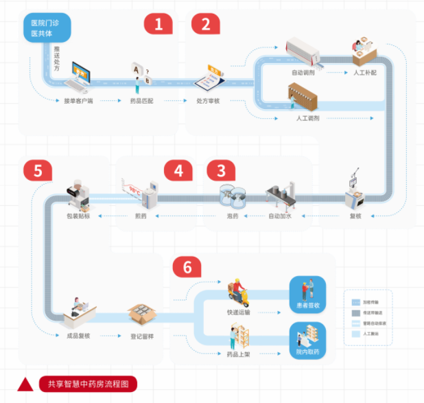 泰安扁鵲中醫(yī)藥健康產(chǎn)業(yè)園智慧共享中藥房的智能煎藥控制管理系統(tǒng)是“大腦和神經(jīng)”。軟件系統(tǒng)不僅覆蓋八大管理模塊,還無(wú)縫鏈接醫(yī)院HIS系統(tǒng),將整個(gè)智慧中藥房的運(yùn)行管理得井井有條,實(shí)現(xiàn)患者、處方的實(shí)時(shí)流轉(zhuǎn)和采集,為醫(yī)院患者提供中藥飲片配送、中藥代煎、個(gè)性化定制、送藥上門(mén)、藥事咨詢等智慧中藥制劑配制服務(wù)。制作全流程采用唯一條碼識(shí)別管理,每一環(huán)節(jié)精準(zhǔn)記錄、專人定制、精準(zhǔn)追溯。