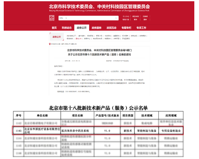 喜報|東華原“醫(yī)共體共享中藥房系統(tǒng)”躋身北京新技術(shù)新產(chǎn)品名單,彰顯卓越技術(shù)實力