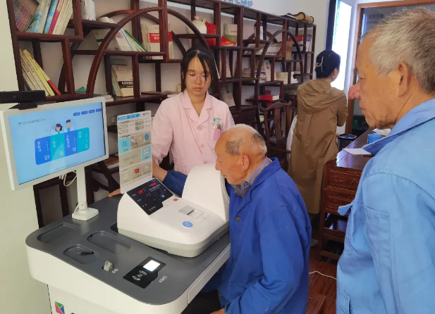 走進(jìn)“健康小屋”,映入眼簾的是健康管理一體機(jī)設(shè)備,群眾可自助檢測身高、體重、體脂含量、血壓、心率、血糖、血氧、尿酸等多項(xiàng)重要指標(biāo),設(shè)備還會自動打印監(jiān)測結(jié)果,及時獨(dú)立完成自我健康監(jiān)測,操作簡單,方便了很多慢性病患者,實(shí)現(xiàn)“小病不出村,健康提前管”的“家門口”健康服務(wù)需求。