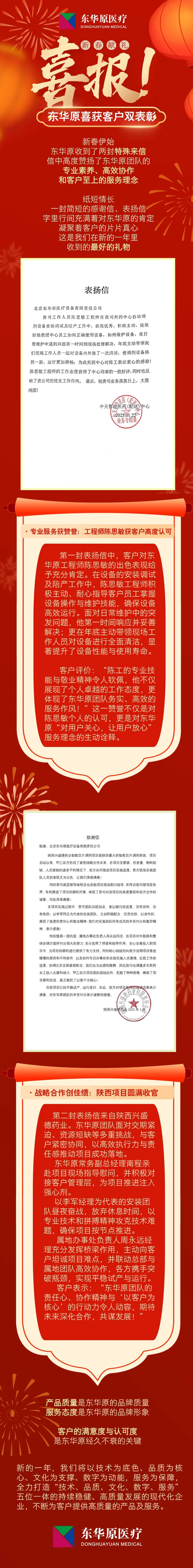 開工有“喜”,為專業(yè)點贊!東華原喜獲客戶雙表揚