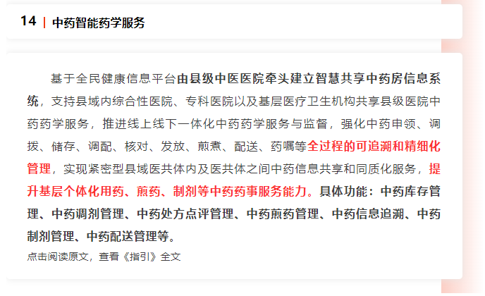 《緊密型縣域醫(yī)共體信息化功能指引》印發(fā):縣級中醫(yī)院牽頭建立智慧共享中藥房信息系統(tǒng)