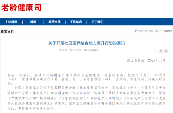 老齡健康司:關(guān)于開展社區(qū)醫(yī)養(yǎng)結(jié)合能力提升行動的通知