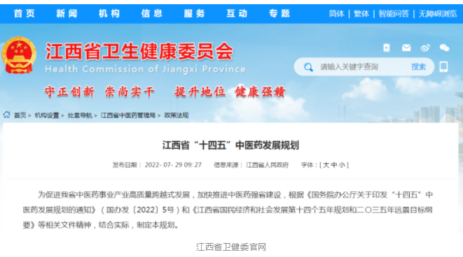 江西省“十四五”中醫(yī)藥發(fā)展規(guī)劃