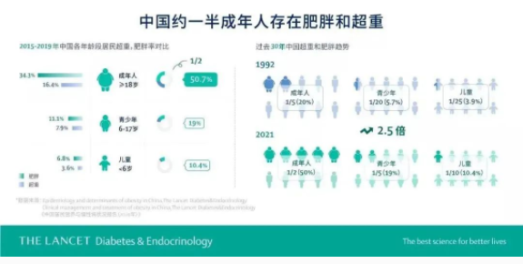 隨著生活水平的不斷提高,肥胖已成為影響人類健康的慢性代謝性疾病。此前,華中科技大學(xué)同濟醫(yī)學(xué)院公共衛(wèi)生學(xué)院潘安等在《柳葉刀·糖尿病與內(nèi)分泌學(xué)》6月刊上發(fā)表了關(guān)于中國肥胖的系列文章。文章指出,《中國居民營養(yǎng)與慢性病狀況報告(2020年)》最新數(shù)據(jù)顯示,我國超過1/2的成年人超重或肥胖,超重和肥胖率分別為34.3%和16.4%。6歲以下兒童中,1/10超重或肥胖,超重和肥胖率分別為6.8%和3.6%;6—17歲青少年中,近1/5超重或肥胖,超重和肥胖率分別為11.1%和7.9%。
