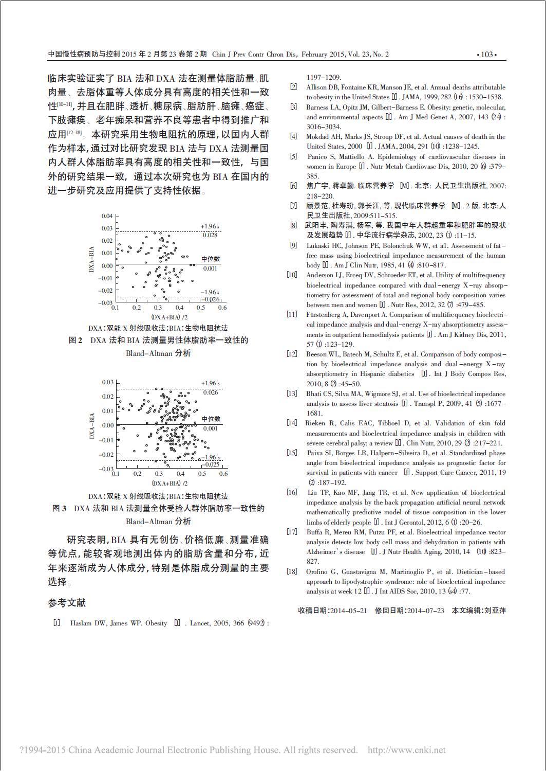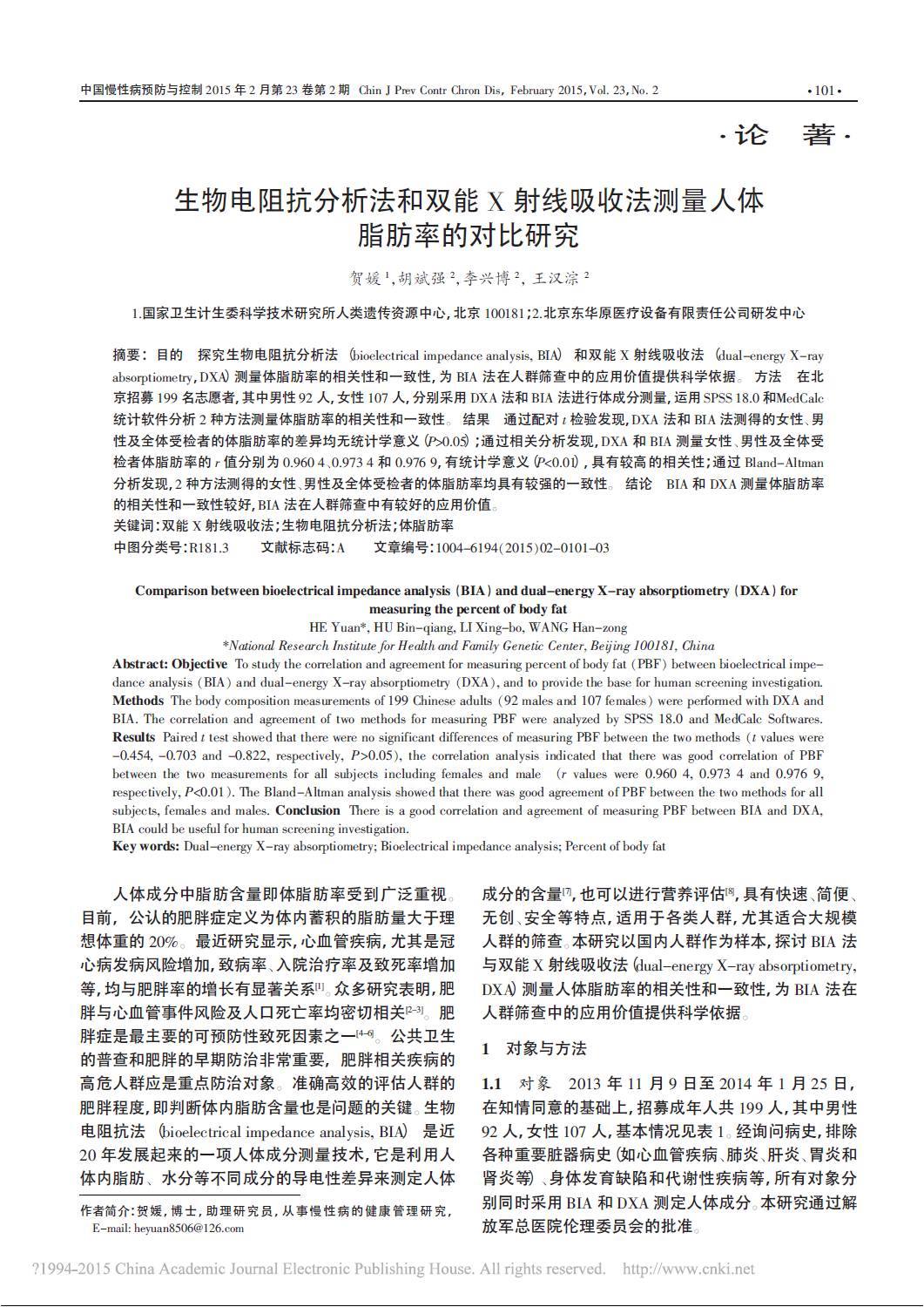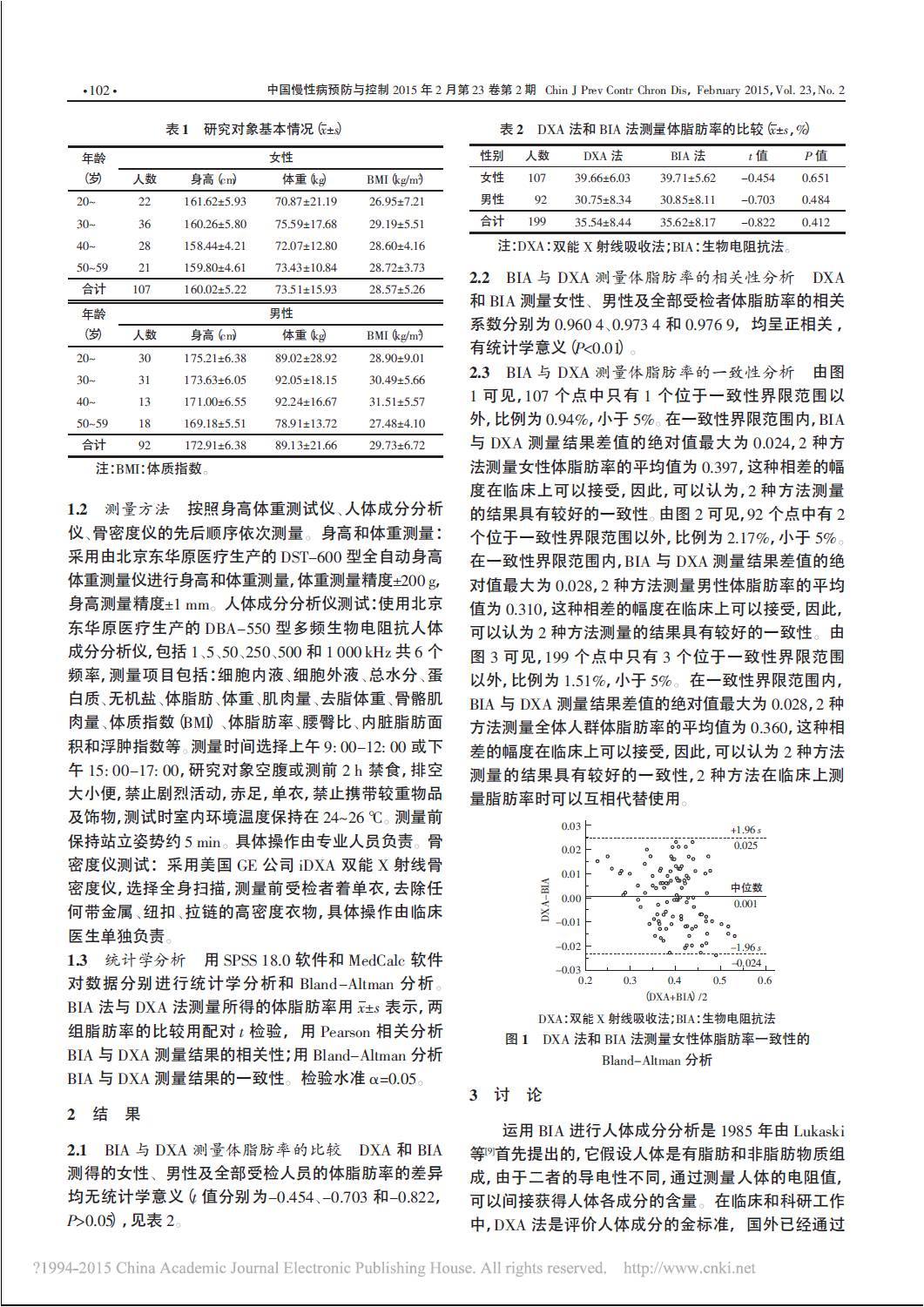 生物電阻抗分析法和雙能X射線吸收法測量人體脂肪率的對比研究