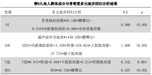 4.3久坐人群體成分、肌肉耐力、性別和骨密度指標(biāo)間的多元逐步回歸分析