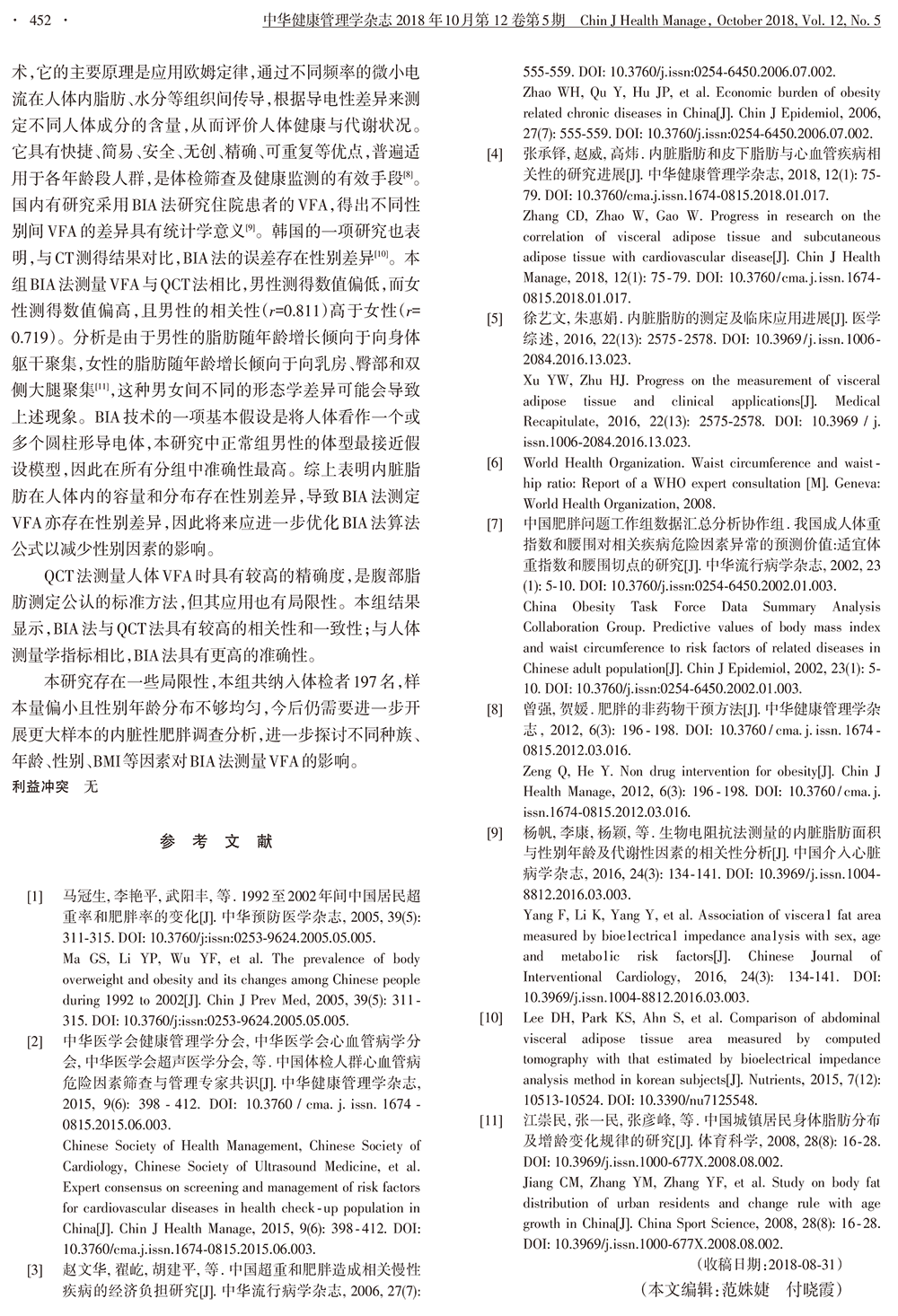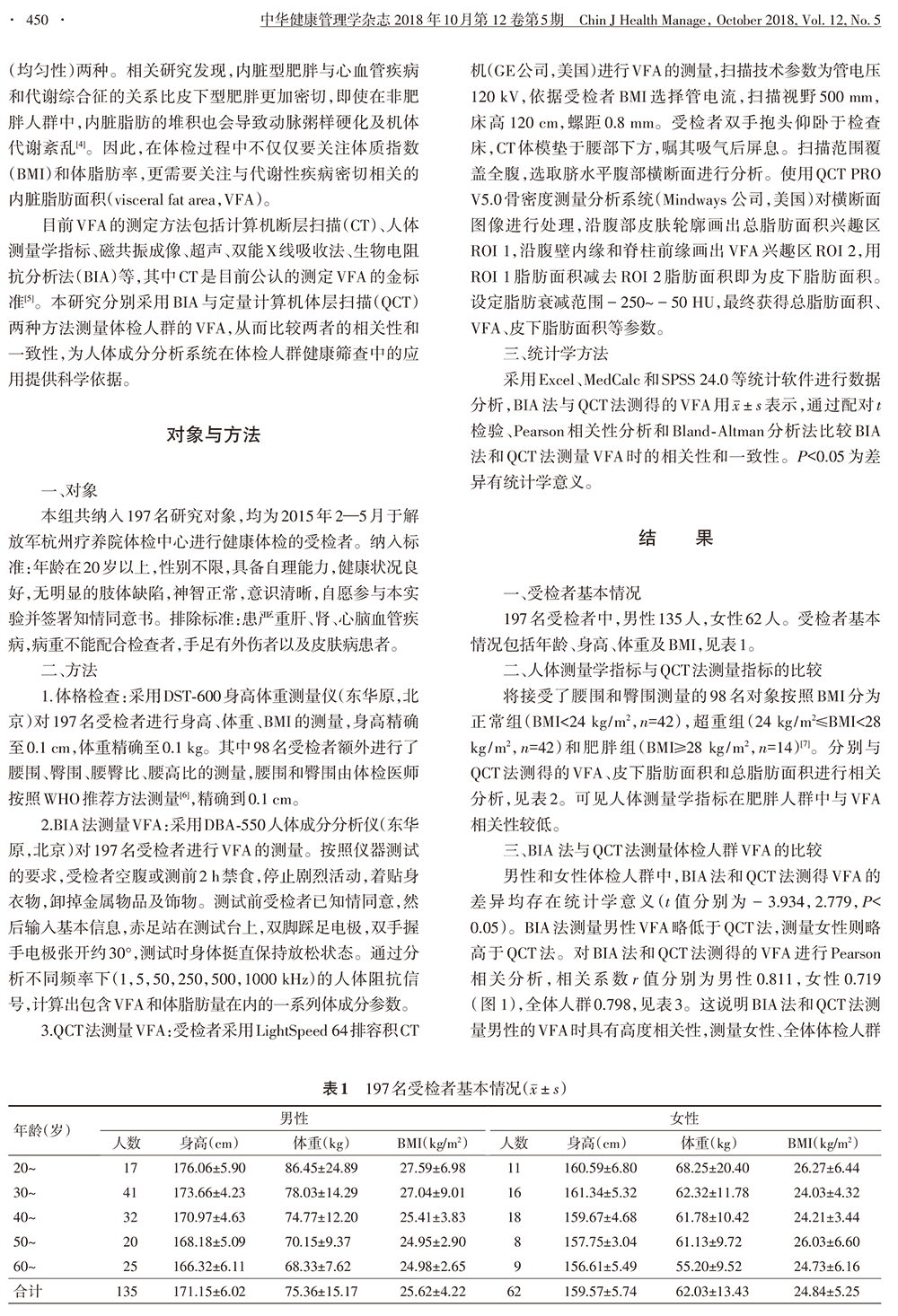 生物電阻抗法和定量計(jì)算機(jī)體層掃描法測(cè)量體檢人群的內(nèi)臟脂肪面積的對(duì)比研究