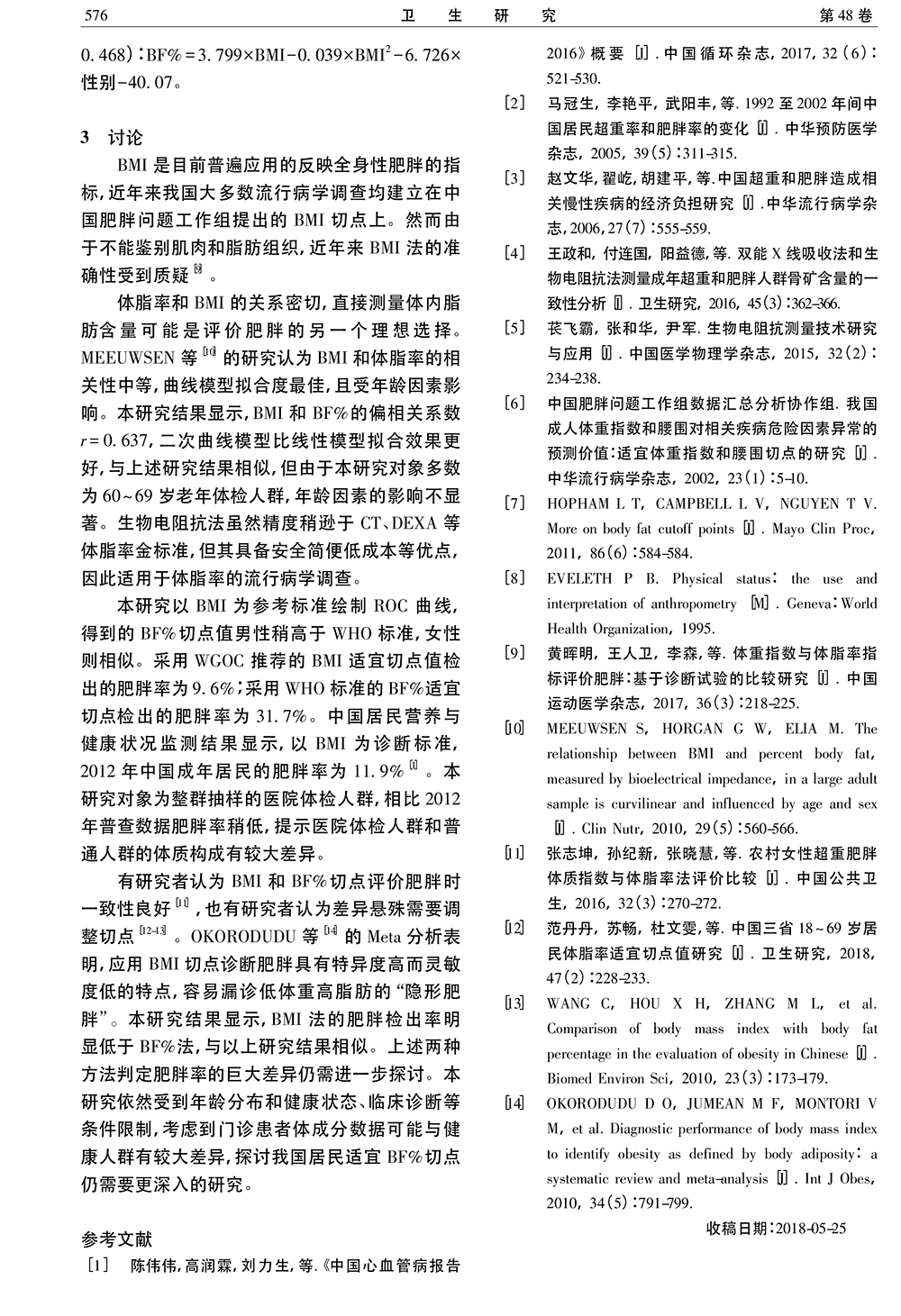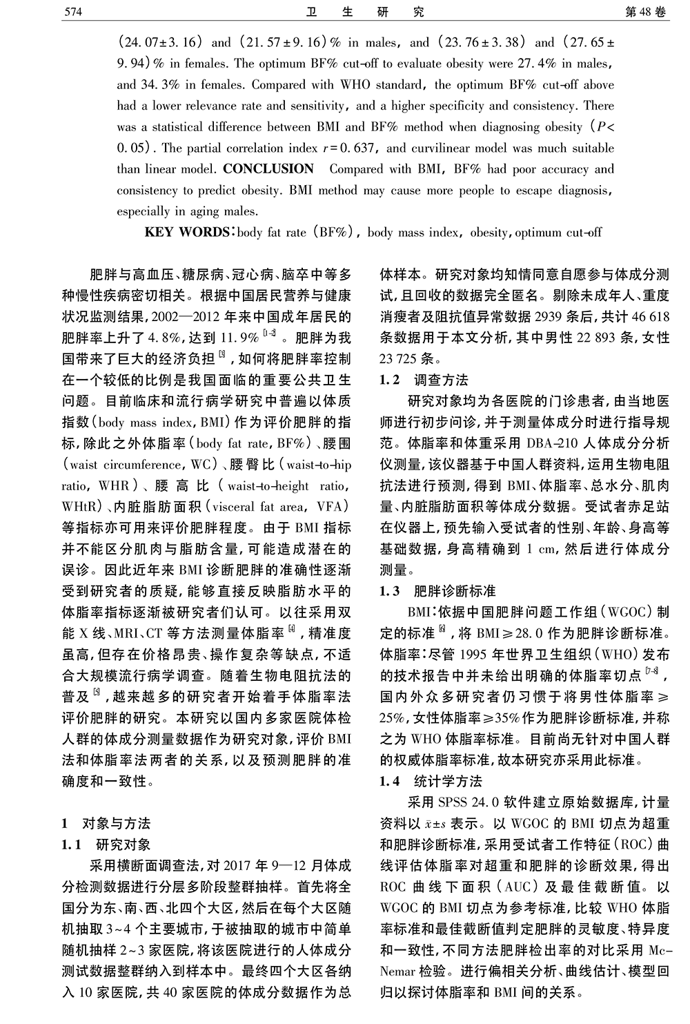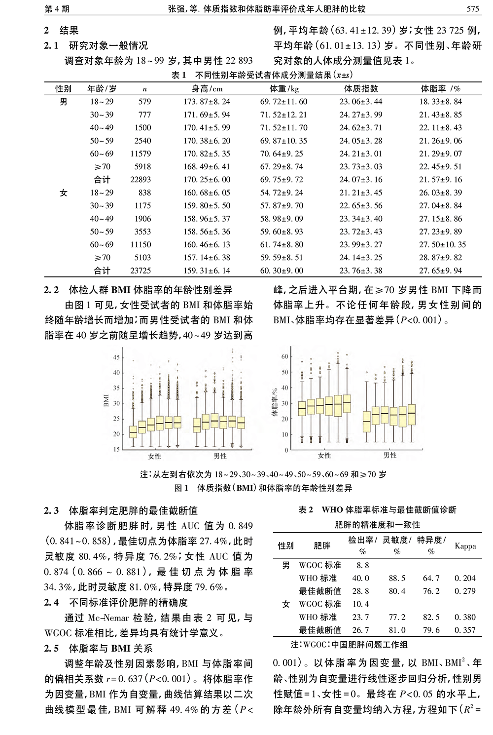 體質(zhì)指數(shù)和體脂肪率評價成年人肥胖的比較