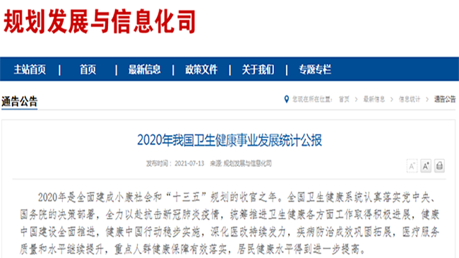 2021-07-20來源:衛(wèi)生健康事業(yè)發(fā)展統(tǒng)計公報 -