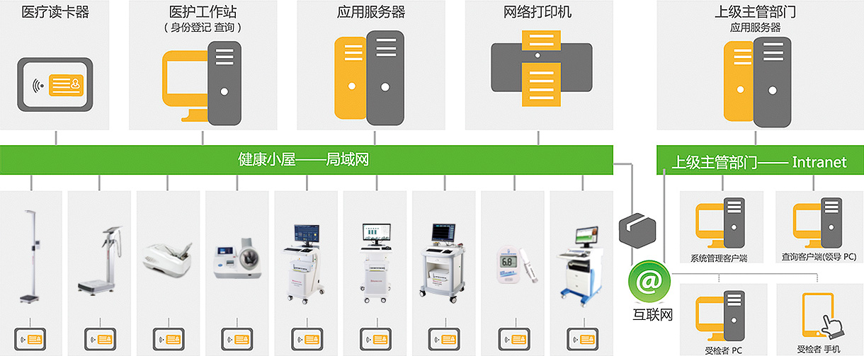 小屋內(nèi)設(shè)備可少至數(shù)臺(tái),多至十幾臺(tái),可根據(jù)客戶(hù)需求配置個(gè)性化健康小屋。