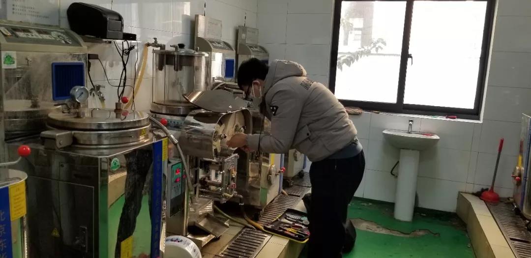 2月3號,接到客戶需求,業(yè)務(wù)員章健、施鵬程、陸斌三人來回700多公里,開車前往亳州滬譙藥業(yè),運輸設(shè)備耗材,并檢修機(jī)器。沒地方吃飯,就吃泡面,餅干充饑;沒地方住,輪流開車當(dāng)天往返。送耗材到風(fēng)陽,送機(jī)器到蚌埠......他們的腳步一刻也沒有停歇,因為他們知道,一線需要設(shè)備,一線需要他們。