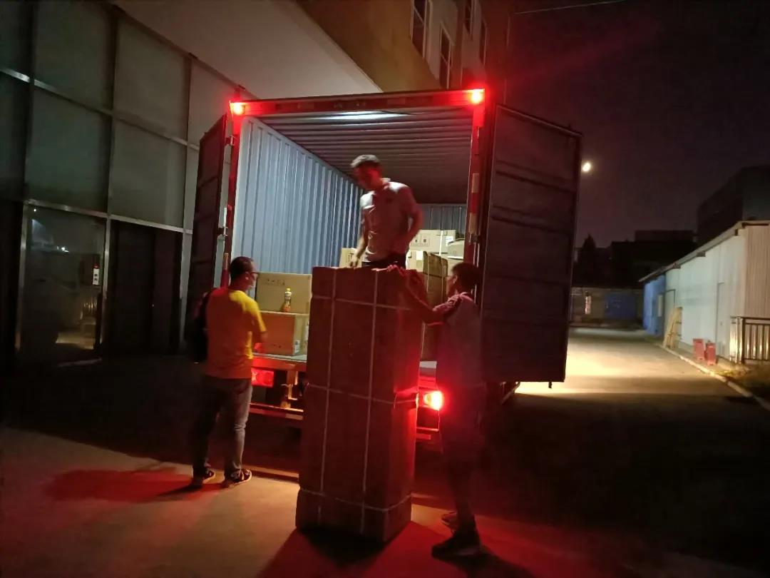 7月25日晚上9時20分,東華原醫(yī)療第一批支援新疆的各型號設備298臺及包裝耗材750套裝車完畢。滿載的貨車駛出大門,奔赴新疆。車上運載了60臺十功能煎藥機、148臺包裝機、其他各種不同規(guī)格的煎藥機90臺。在此之前,24日,東華原醫(yī)療1300套包裝卷已經踏上通往新疆的路。這一次,我們一輛17.5米、一輛13米、一輛9.6米的三輛大貨車,滿載著希望,出發(fā)!