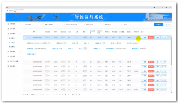 在調(diào)劑管理的處方查詢頁面,詳細(xì)列出了處方信息,并標(biāo)注處方當(dāng)前的進(jìn)行狀態(tài),如“已復(fù)核”“已審方”等,便于管理人員進(jìn)行查看、打印等各項(xiàng)操作。同時(shí),也為查詢整體處方情況提供了便利。
