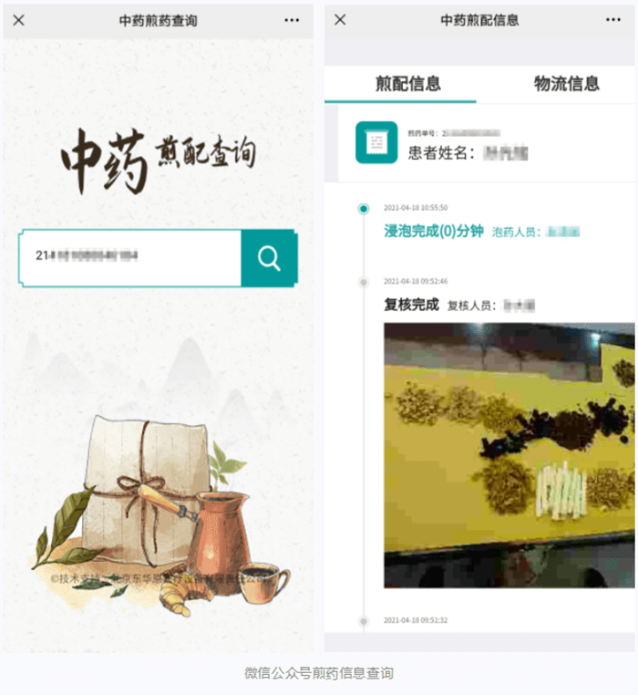 患者可通過微信隨時(shí)查詢藥物的煎煮進(jìn)度;