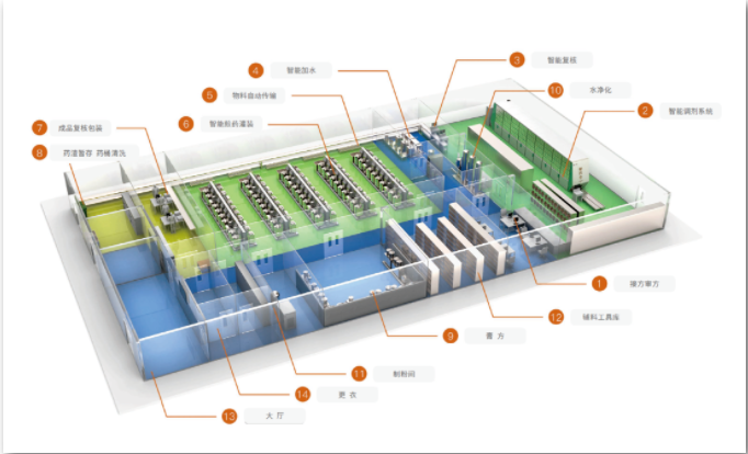 整體上,東華原智慧中藥房解決方案實(shí)現(xiàn)了以智能調(diào)劑系統(tǒng)、智能復(fù)核設(shè)備、自動(dòng)化運(yùn)輸系統(tǒng)、自動(dòng)加水系統(tǒng)、煎藥包裝設(shè)備、打印設(shè)備等為基礎(chǔ),將煎藥工藝流程(包括接方、調(diào)劑、復(fù)核、泡藥、煎藥、包裝、成品復(fù)核、發(fā)貨)、終端客戶、設(shè)備和人員、工藝質(zhì)量等環(huán)節(jié)進(jìn)行全過程數(shù)據(jù)可溯源管理與控制。