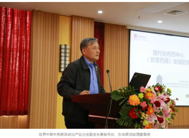 東華原中醫(yī)項(xiàng)目營銷總監(jiān)王寧從現(xiàn)代化煎藥中心建設(shè)角度出發(fā),從智能調(diào)劑、自動加水、自動運(yùn)輸?shù)茸詣踊O(shè)備發(fā)揮的對湯劑質(zhì)量的控制作用作了重點(diǎn)講述,受到了與會人員的一致認(rèn)可。世界中聯(lián)中藥房自動化產(chǎn)業(yè)分會副會長兼秘書長、東華原總經(jīng)理姜黎濱以《現(xiàn)代化智慧中藥房發(fā)展趨勢》為題,回顧了中藥湯劑質(zhì)量控制的發(fā)展歷史,并剖析了智慧中藥房未來的建設(shè)趨勢和影響質(zhì)量管控的關(guān)鍵因素,為中藥湯劑質(zhì)量管控提出了意見和建議。