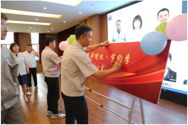 現(xiàn)場進(jìn)行了第三屆“降本增效·節(jié)約季”簽字儀式,各中心總監(jiān)上臺(tái)簽字。簽字儀式完成后,物資管理中心的吳峰總監(jiān)作為代表,表達(dá)了將帶領(lǐng)中心成員積極響應(yīng)公司號(hào)召,用心參與節(jié)約季活動(dòng)的堅(jiān)定態(tài)度。