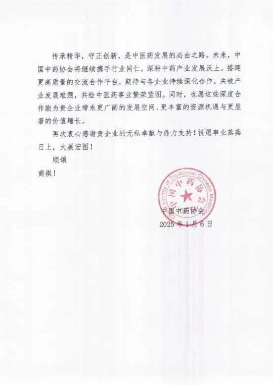 中國(guó)中藥協(xié)會(huì)發(fā)來(lái)感謝信!