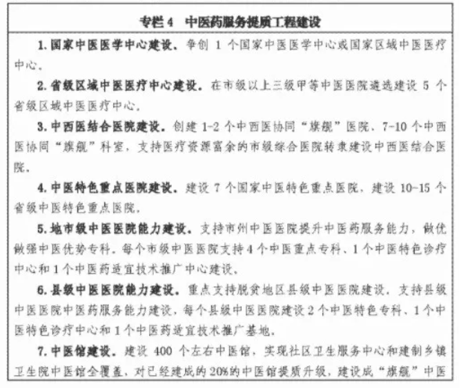 此外,依托高水平三級甲等中醫(yī)醫(yī)院,建設(shè)1家國家中醫(yī)疫病防治基地;建設(shè)1家國家中醫(yī)緊急醫(yī)學(xué)救援基地;爭創(chuàng)1個國家中醫(yī)醫(yī)學(xué)中心或國家區(qū)域中醫(yī)醫(yī)療中心;建設(shè)1個國家中醫(yī)康復(fù)中心;爭創(chuàng)1個國家中醫(yī)藥傳承創(chuàng)新中心、1個國家中醫(yī)藥管理局重點實驗室、1個國家藥品監(jiān)督管理局重點實驗室。