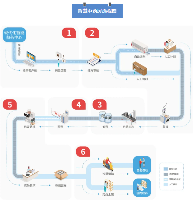 為解決中醫(yī)藥服務(wù)中的煎藥工藝質(zhì)量控制難、工藝數(shù)據(jù)追溯難和煎藥過(guò)程監(jiān)管難等痛點(diǎn)問(wèn)題。東華原開(kāi)發(fā)的智慧中藥房整體解決方案,將大數(shù)據(jù)、物聯(lián)網(wǎng)等技術(shù)與中醫(yī)藥深度融合,實(shí)現(xiàn)了從處方管理、智能飲片調(diào)劑、自動(dòng)化加水運(yùn)輸、湯劑煎煮、信息化軟件管理、包裝及送貨上門(mén)一條龍自動(dòng)化優(yōu)質(zhì)服務(wù),覆蓋湯劑、膏方、粉劑等多種劑型,同時(shí),還實(shí)現(xiàn)了全流程的一條龍監(jiān)管,讓中藥煎藥成為賞心悅目的事。