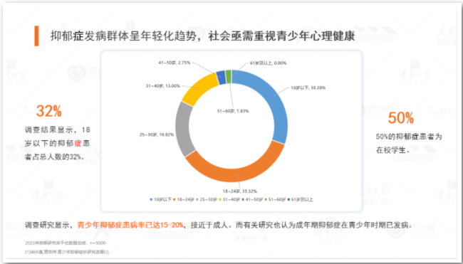 人民日報健康客戶端、健康時報、好心情心理醫(yī)療和心理健康數(shù)字服務平臺、靈北中國、抑郁研究所,共同發(fā)布《2022國民抑郁癥藍皮書》。