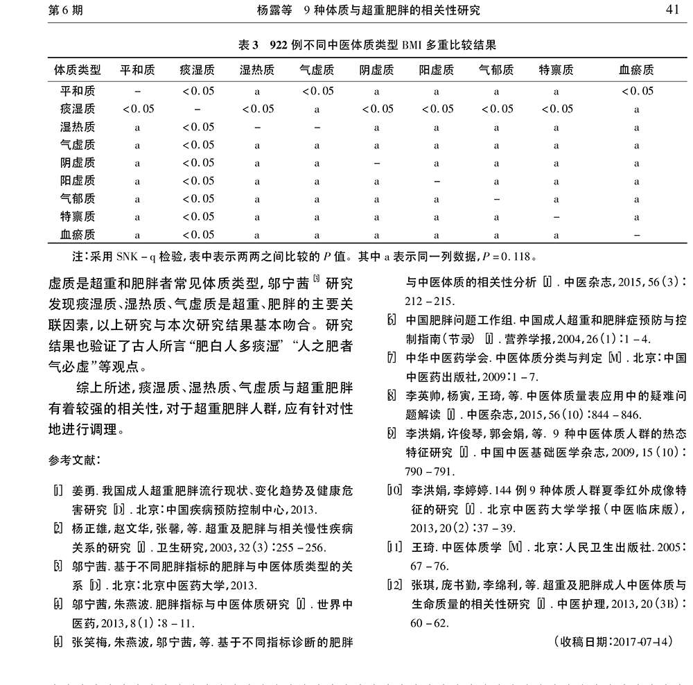 9種體質(zhì)與超重肥胖的相關(guān)性研究