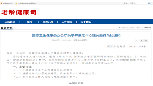 心理關(guān)愛行動將在全國廣泛開展!國家衛(wèi)健委關(guān)于開展老年心理關(guān)愛行動的通知