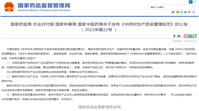把嚴(yán)中藥材高質(zhì)量關(guān)卡!《中藥材生產(chǎn)質(zhì)量管理規(guī)范》發(fā)布