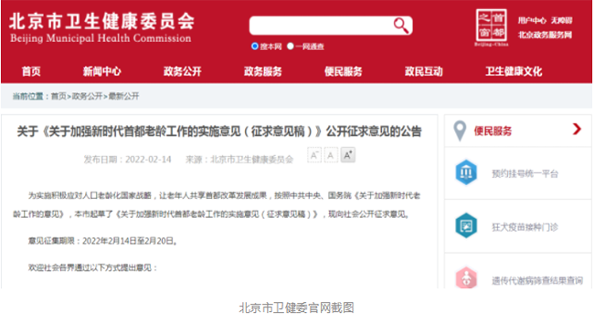 北京市《關于加強新時代首都老齡工作的實施意見(征求意見稿)》發(fā)布