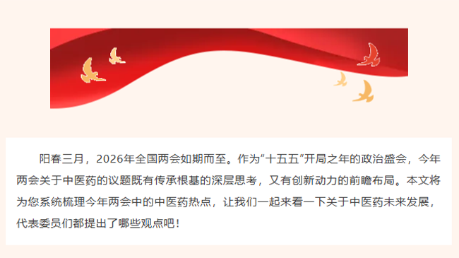 - 阳春三月,2026年全国两会如期而至。作为“十五五”开局之年的政治盛会,今年两会关于中医药的议题既有传承根基的深层思考,又有创新动力的前瞻布局。本文将为您系统梳理今年两会中的中医药热点,让我们一起来看一下关于中医药未来发展,代表委员们都提出了哪些观点吧!